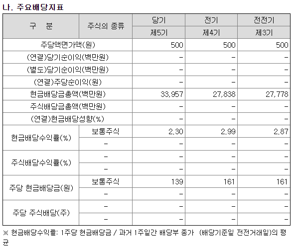 배당은 주식당 158원 (상기 자료를 바탕으로 제 6기 주당 배당금을 예상)