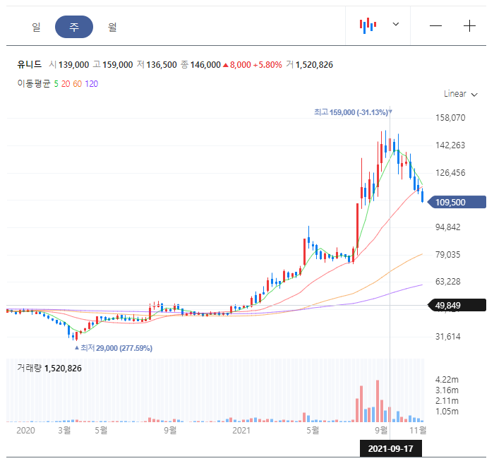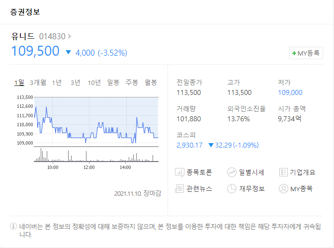 유니드 UNID [코스피 014830] (2021년 11월 10일 종가 기준)